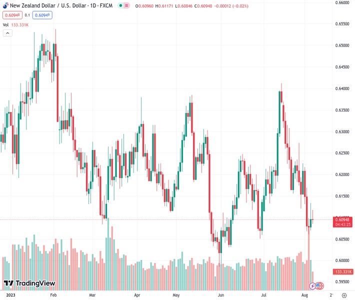 The NZDUSD currency pair is currently experiencing slight growth, slightly above its initial price at around 0.6095.