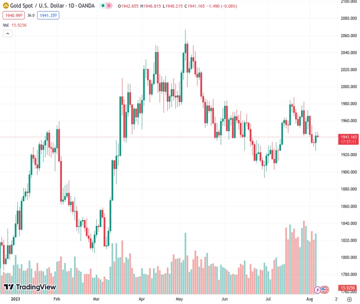 XAUUSD currently trading at 1940.36 at the time of writing. Pair opened at 1942.88 and is trading with a change of -0.13 % .