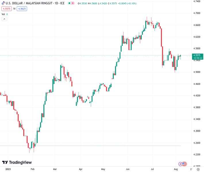 The USD/MYR exchange rate at 4.55700 is expected to encounter strong resistance around 4.5790, which may limit its potential for further gains, according to UOB.