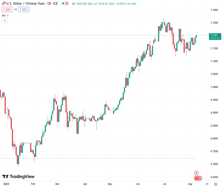 The USDCNY exchange rate is currently at 7.21852, and the People’s Bank of China (PBOC) has established a new reference rate of 7.1365, slightly lower than the previous rate of 7.1380.