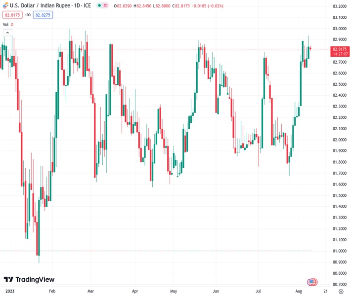 Mizuho predicts that the Indian rupee will begin gradually depreciating in the near future, with the exchange rate of USD to INR currently at 82.8150.