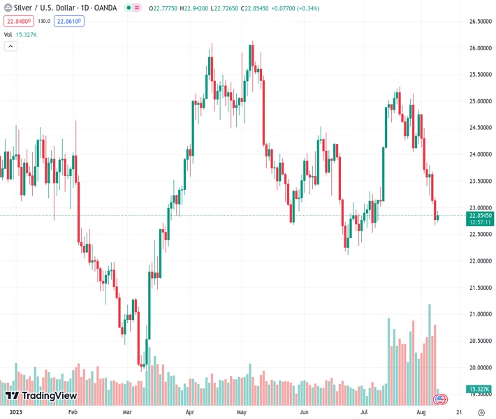 XAGUSD currently trading at 22.85 at the time of writing. Pair opened at 22.78 and is trading with a change of 0.31 % .