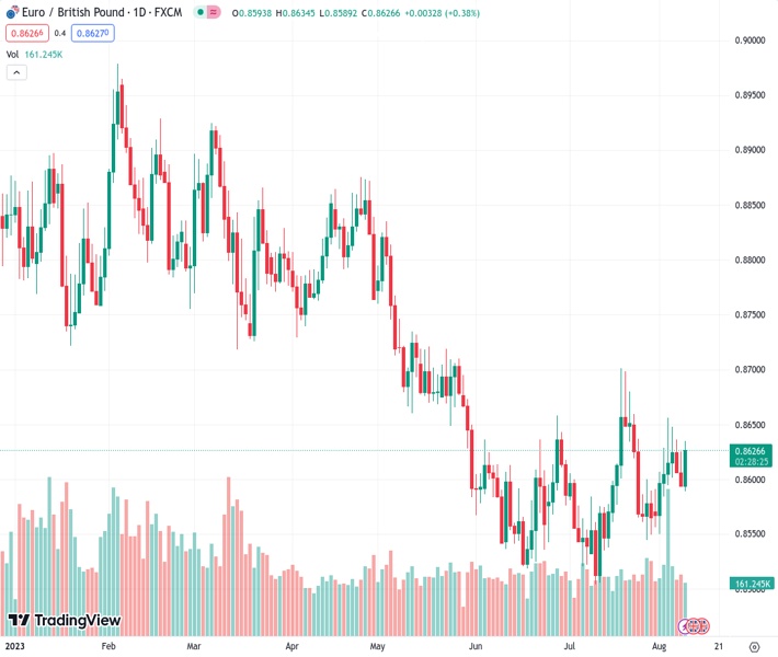 EURGBP currently trading at 0.8626 at the time of writing. Pair opened at 0.8594 and is trading with a change of 0.37 % .