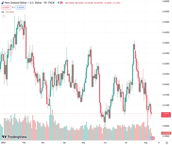 NZDUSD currently trading at 0.6061 at the time of writing. Pair opened at 0.6066 and is trading with a change of -0.08 % .