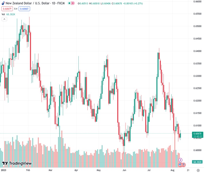 ANZ predicts that the NZDUSD currency pair, currently trading at 0.60677, will experience a steady increase towards 0.63 by the end of the year.
