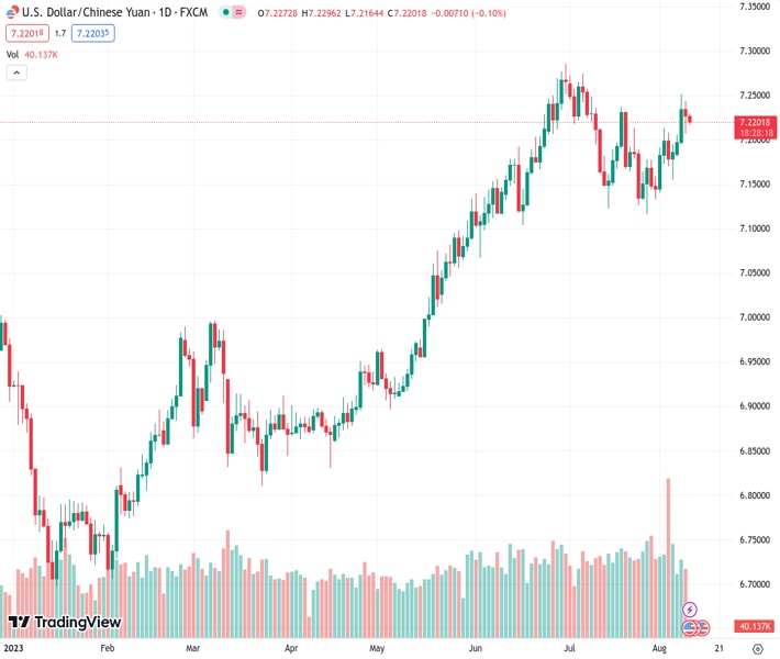 Despite China facing impending economic hardships, the USDCNH has experienced a decline for the second day in a row.