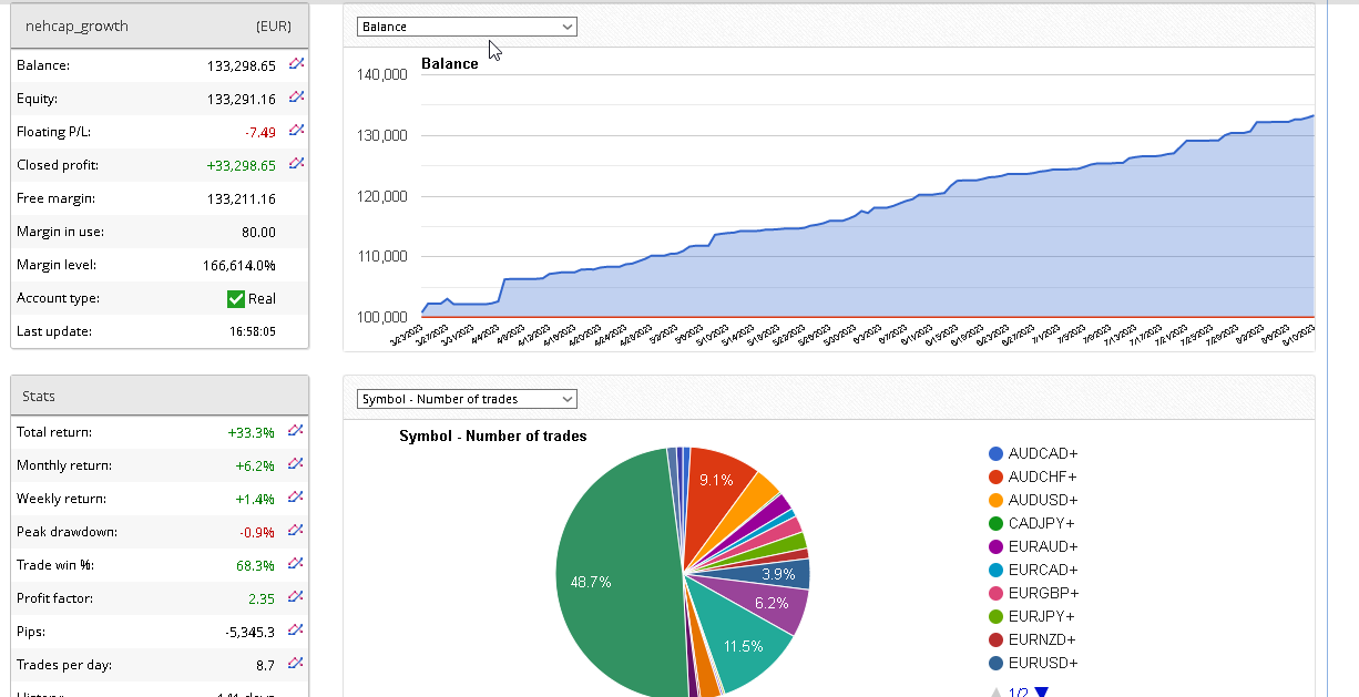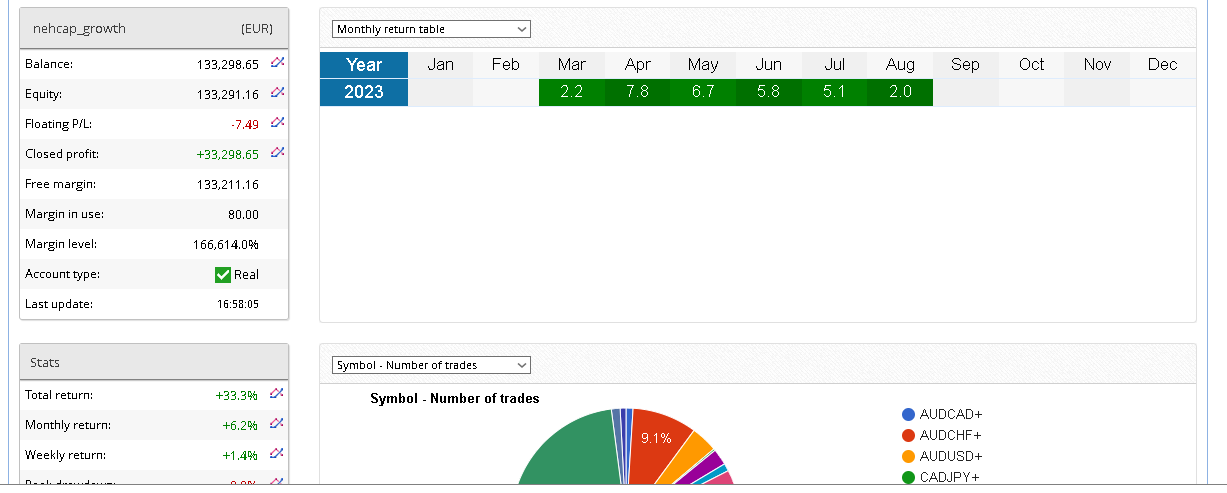 EA_GROWTH remains the top rated retail trading robot for fx. The live account has a live history of many months as verified on live myfxbook. Very consistent and meant for stable returns.  Its not a gambling system like many in the market. EA_GROWTH values low risk. The returns come at a low standard deviation and hence a high sharpe ratio.
