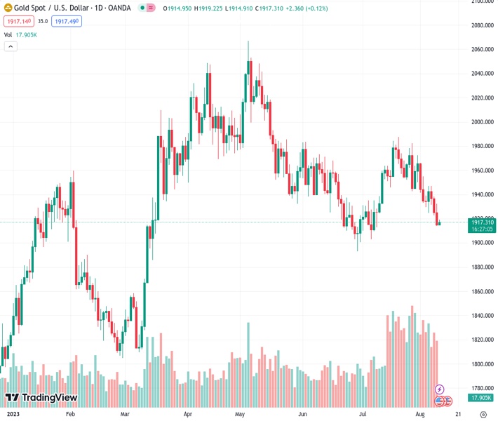 XAUUSD currently trading at 1918.35 at the time of writing. Pair opened at 1914.2 and is trading with a change of 0.22 % .