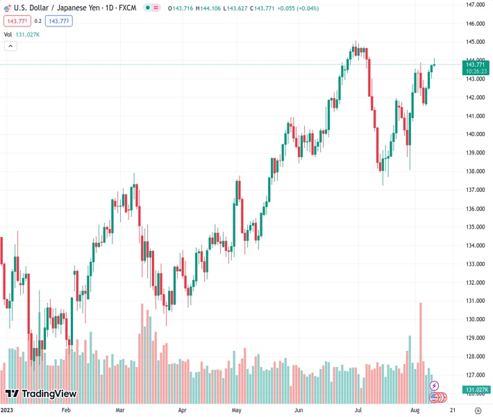 Societe Generale suggests that the current bounce in the USDJPY pair at 143.780 may continue and potentially reach a level of 146.10.