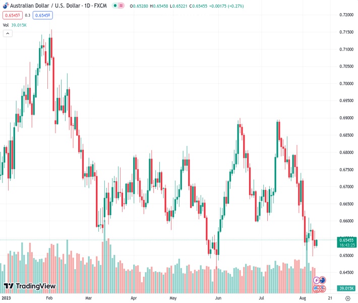 AUDUSD currently trading at 0.6539 at the time of writing. Pair opened at 0.6528 and is trading with a change of 0.17 % .