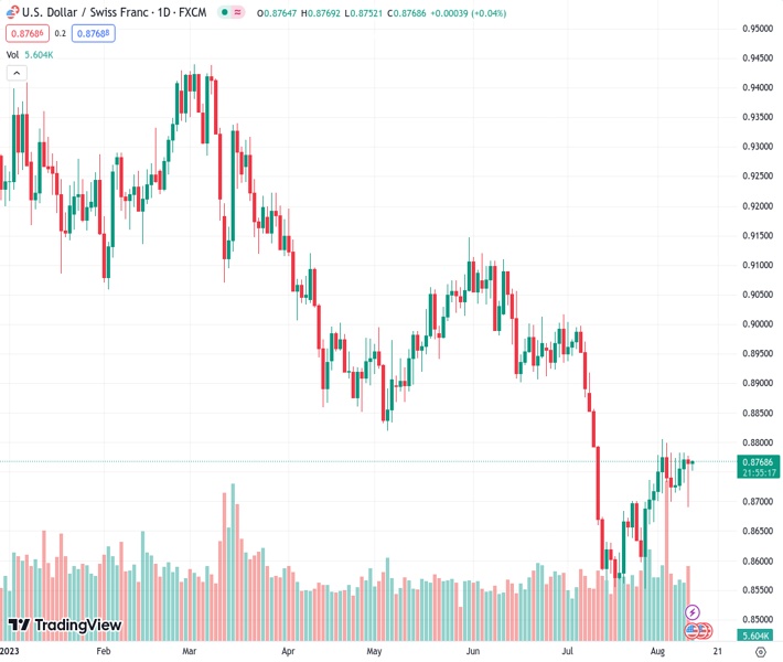 USDCHF currently trading at 0.8767 at the time of writing. Pair opened at 0.8772 and is trading with a change of -0.06 % .