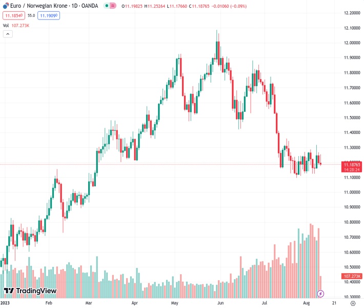 The EURNOK is expected to decrease and reach levels similar to those observed in late February, approximately between 10.90 and 10.85, according to CIBC.