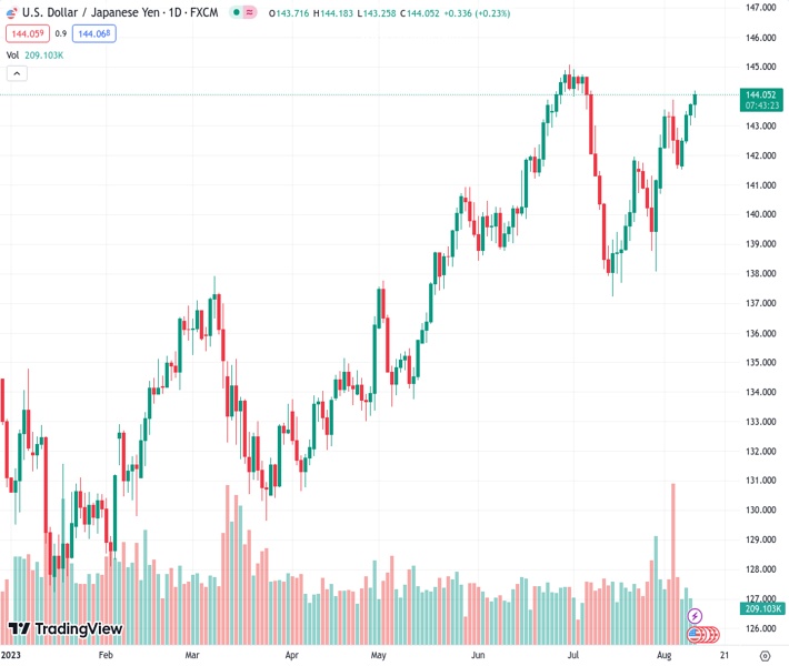 USDJPY currently trading at 143.82 at the time of writing. Pair opened at 143.73 and is trading with a change of 0.06 % .