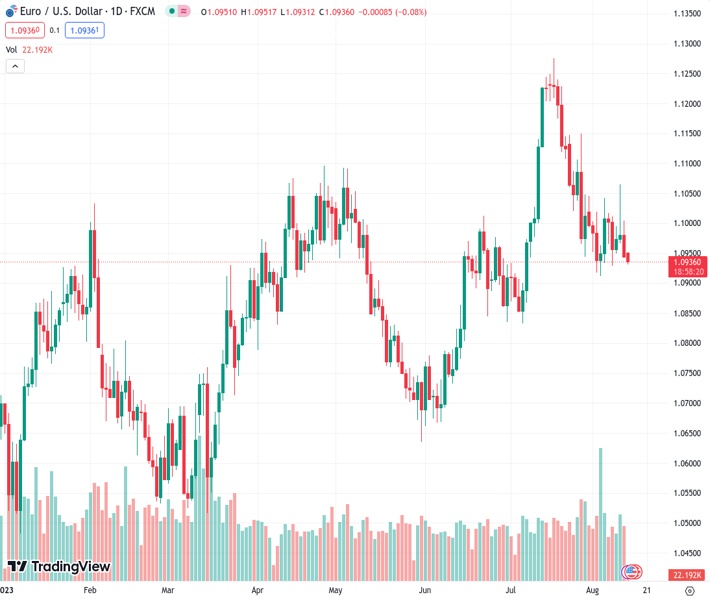 EURUSD currently trading at 1.0937 at the time of writing. Pair opened at 1.0946 and is trading with a change of -0.08% % .
