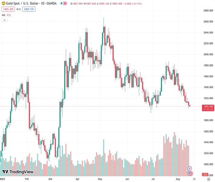 XAUUSD currently trading at 1907.83 at the time of writing. Pair opened at 1913.83 and is trading with a change of -0.31 % .