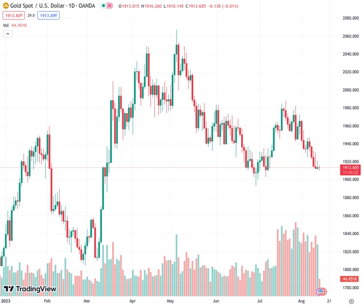 The predicted gold price of $1,914.34 for XAUUSD is in danger of falling below $1,900 if there are no changes in the data, according to TDS.