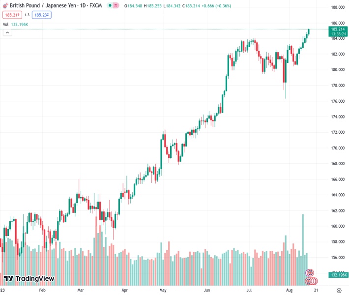 GBPJPY currently trading at 184.91 at the time of writing. Pair opened at 184.62 and is trading with a change of 0.16 % .