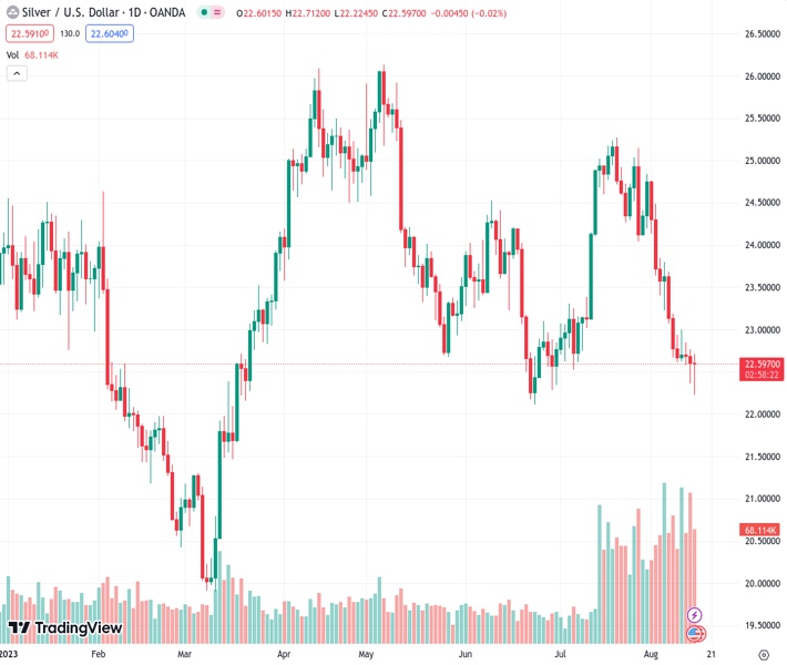 XAGUSD currently trading at 22.6 at the time of writing. Pair opened at 22.6 and is trading with a change of 0.0 % .