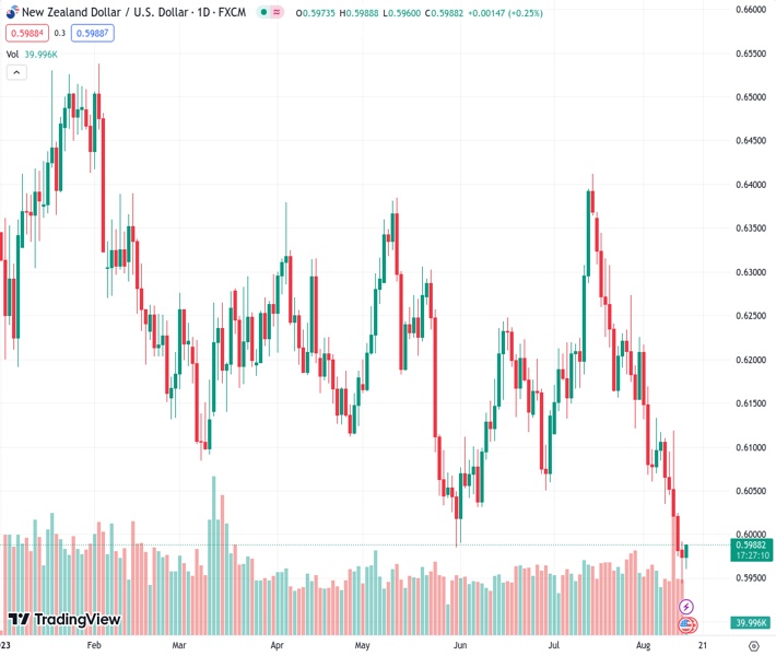 There is some interest from buyers in the NZDUSD currency pair at a price of 0.59869. However, the pair is still trading below the 0.6000 level on Tuesday.