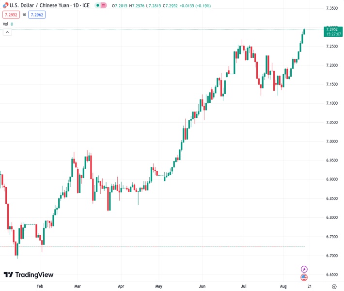 Commerzbank predicts that USDCNY will decline back to approximately 7.00 by the end of the fourth quarter.