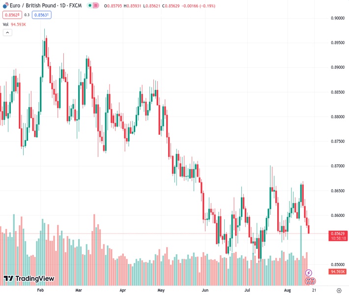 The EURGBP currency pair at a rate of 0.85634 continued to be at risk due to the UK’s core inflation staying persistent in July.