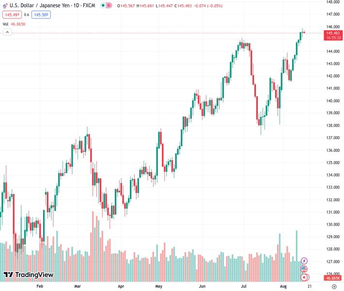• The pair currently trades last at 145.495.