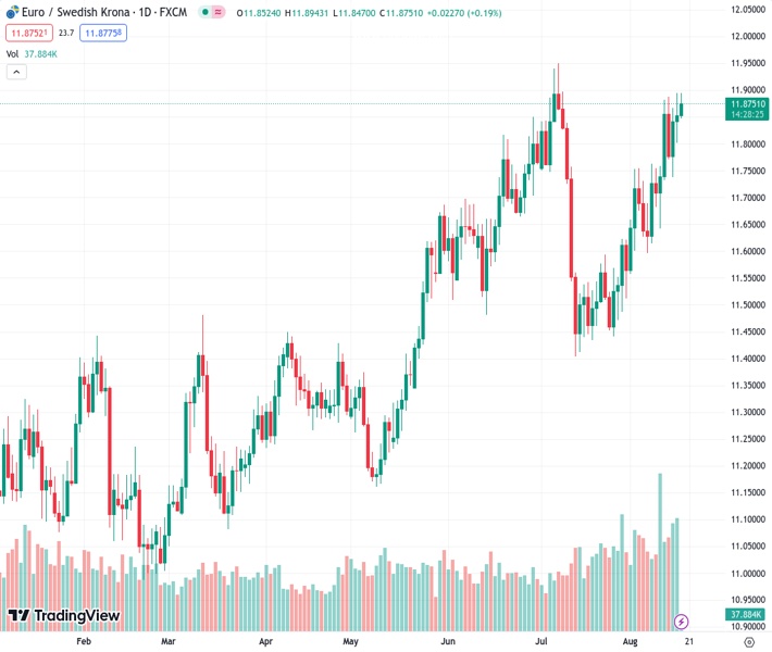 According to Commerzbank, the Swedish Krona is not expected to strengthen until the following year.