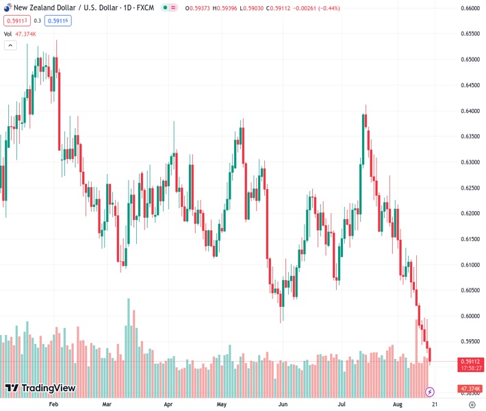 NZDUSD currently trading at 0.5914 at the time of writing. Pair opened at 0.5937 and is trading with a change of -0.39% % .