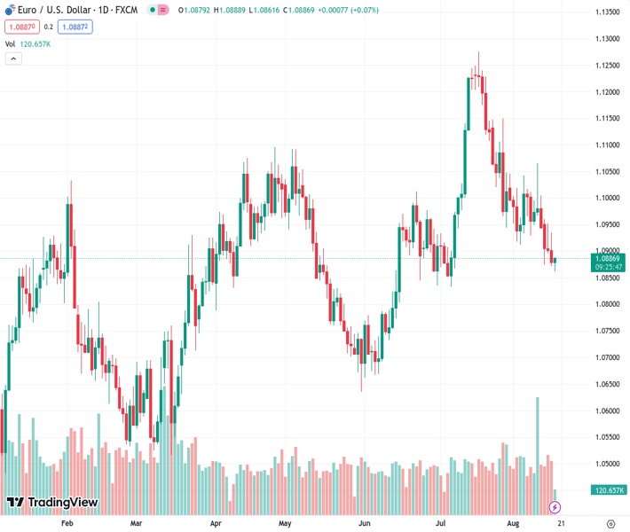 Scotiabank suggests that the EUR/USD pair would only show short-term strength if it surpasses the level of 1.0950, as observed currently at 1.08848.