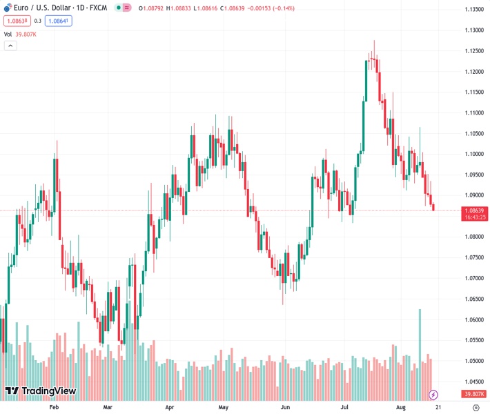 EURUSD currently trading at 1.0864 at the time of writing. Pair opened at 1.0879 and is trading with a change of -0.14 % .