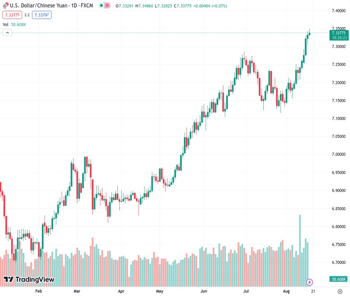 USDCNH currently trading at 7.3368 at the time of writing. Pair opened at 7.3364 and is trading with a change of 0.01% % .
