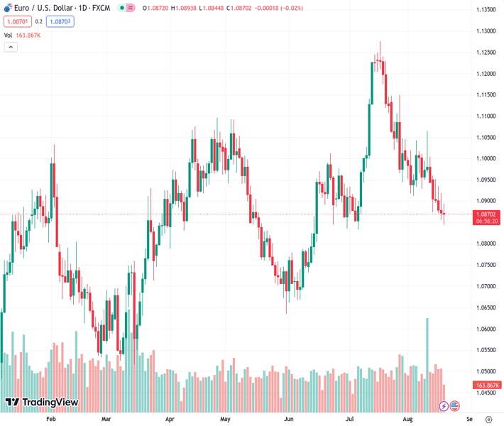 EURUSD currently trading at 1.0864 at the time of writing. Pair opened at 1.0872 and is trading with a change of -0.07 % .