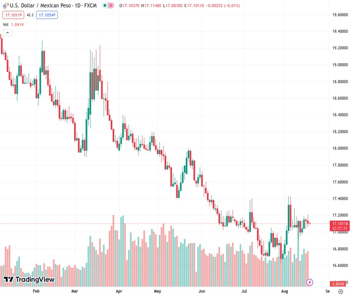 The Mexican Peso, indicated by #USDMXN at 17.1036, has taken cues from the options market to reduce its weekly losses around the 17.10 mark.