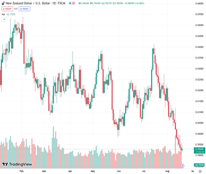 NZDUSD currently trading at 0.5937 at the time of writing. Pair opened at 0.5927 and is trading with a change of 0.17 % .