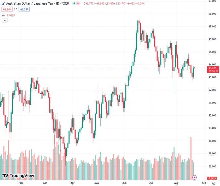 AUDJPY currently trading at 93.77 at the time of writing. Pair opened at 93.2 and is trading with a change of 0.61 % .