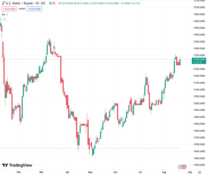 The possibility of the USDIDR rising further is being considered, according to UOB, with the currency pair currently trading at 15,320.0.