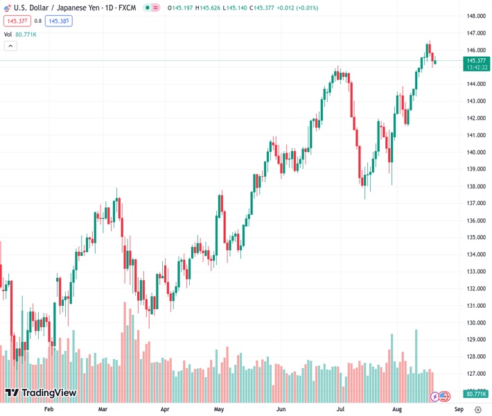 The USDJPY currency pair is currently trading at 145.432. However, there is less upward pressure on the pair, as it is finding resistance below the 144.00 level, according to UOB.