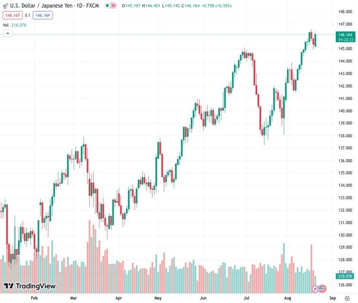 USDJPY currently trading at 146.26 at the time of writing. Pair opened at 145.4 and is trading with a change of 0.59 % .