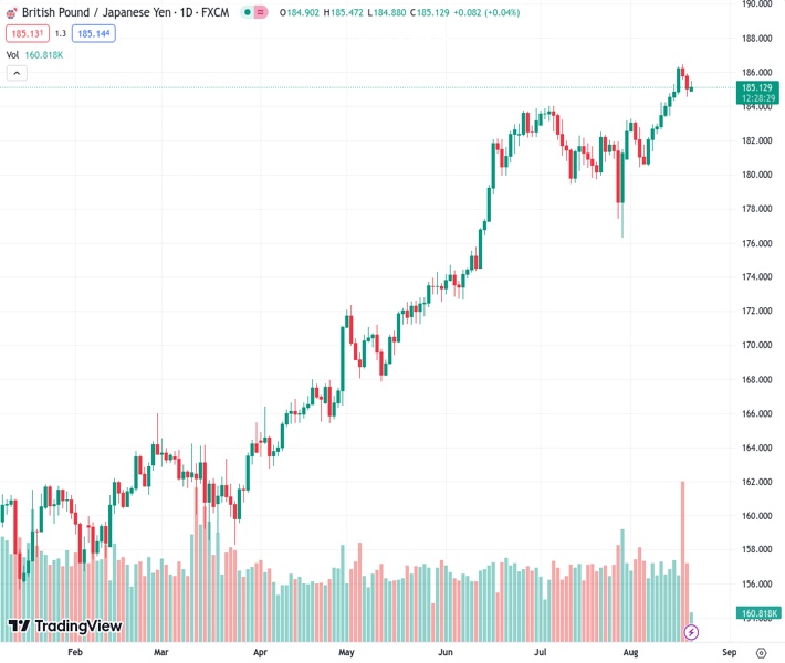 GBPJPY currently trading at 185.26 at the time of writing. Pair opened at 185.12 and is trading with a change of 0.08 % .