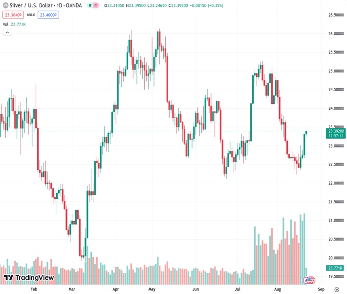 XAGUSD currently trading at 23.35 at the time of writing. Pair opened at 23.31 and is trading with a change of 0.17 % .