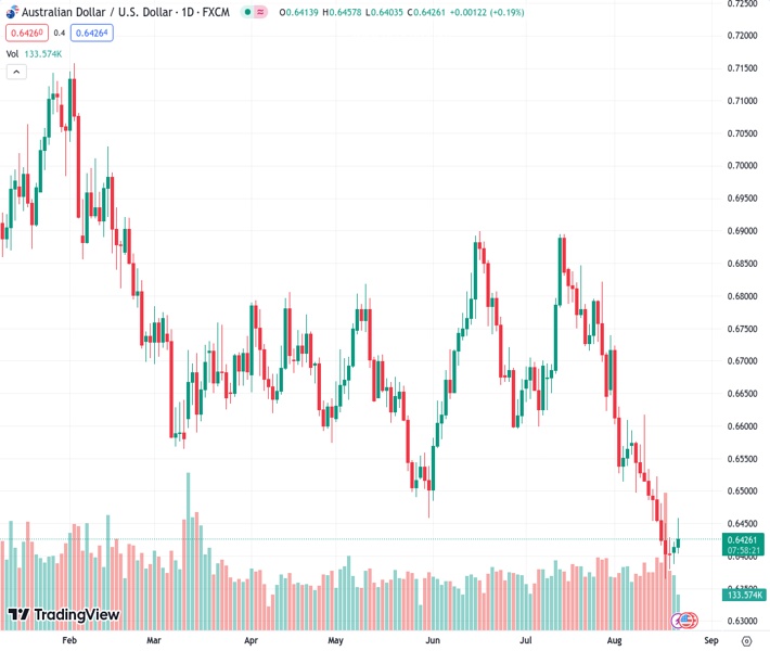 A decisive break above August 16 high around 0.6480 will drive the asset toward August 15 high at 0.6522, followed by August 10 high at 0.6616.