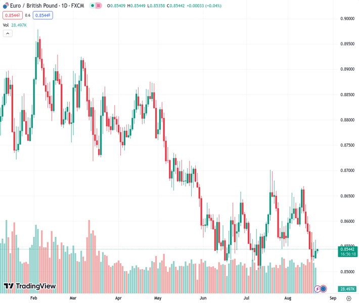 The EURGBP currency pair, currently trading at 0.85446, is making progress and moving towards 0.8543. It has increased by 0.02% throughout the day.