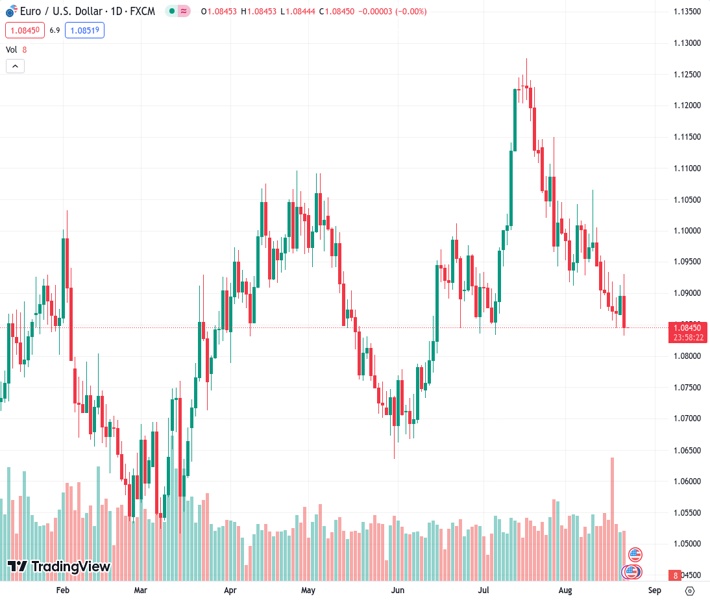 EURUSD currently trading at 1.0849 at the time of writing. Pair opened at 1.0896 and is trading with a change of -0.43 % .