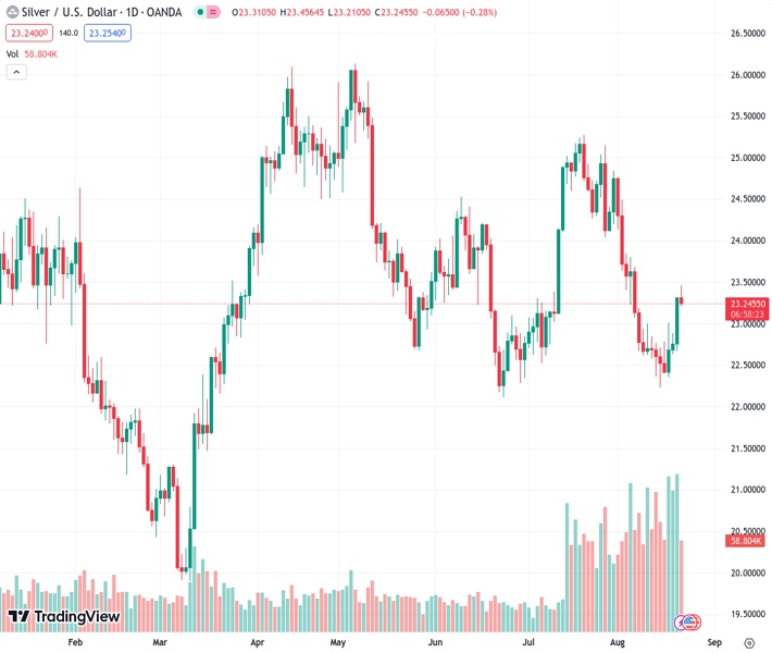 - Silver price finds selling pressure near $23.50 as investors turn cautious ahead of Jackson Hole.