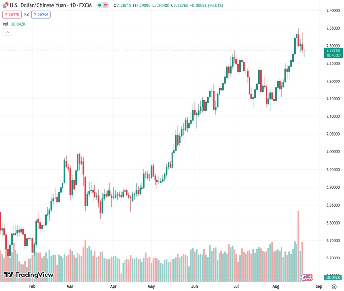 USDCNH currently trading at 7.2878 at the time of writing. Pair opened at 7.2884 and is trading with a change of -0.01% % .