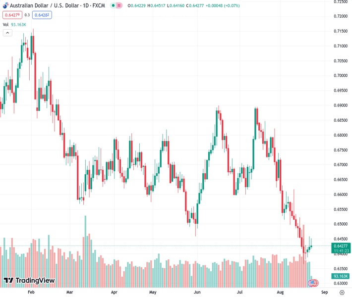 AUDUSD currently trading at 0.643 at the time of writing. Pair opened at 0.6423 and is trading with a change of 0.11 % .