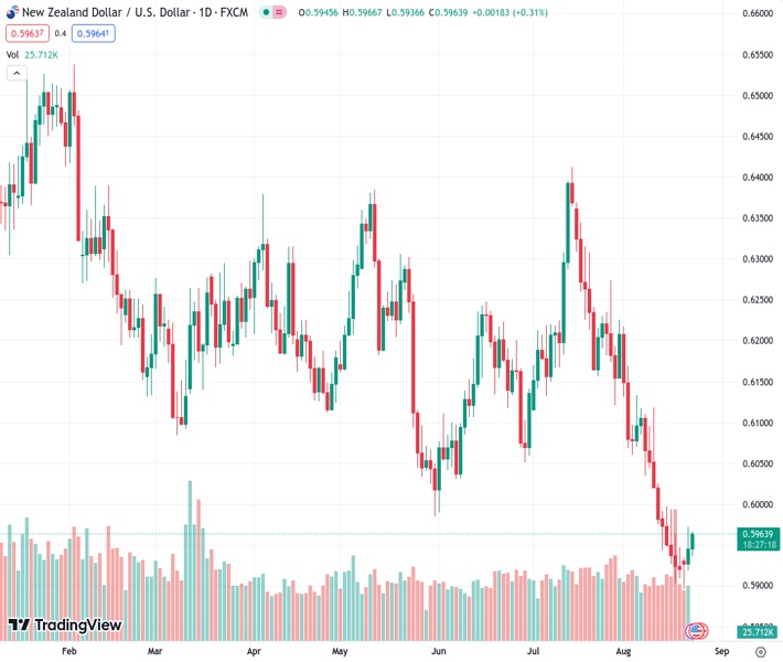 The pair currently trades last at 0.59615.