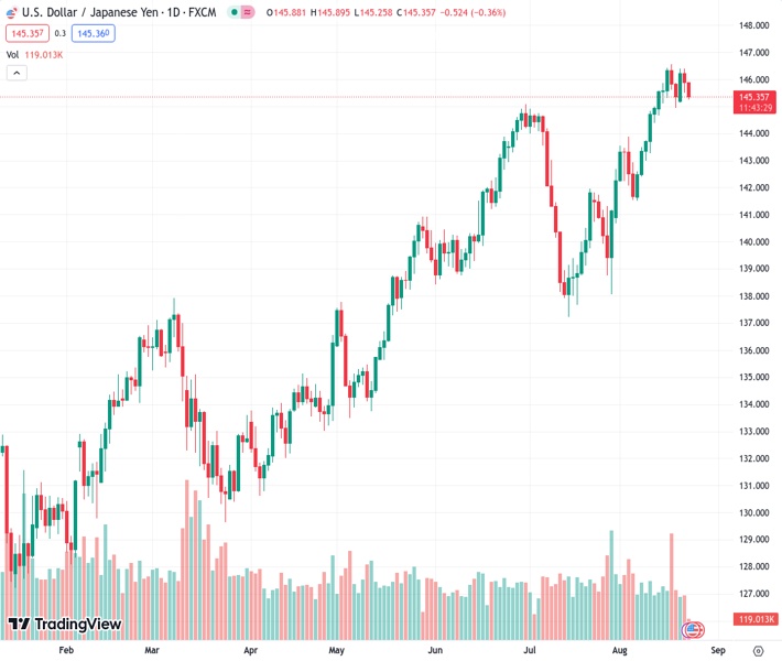 USDJPY currently trading at 145.36 at the time of writing. Pair opened at 145.89 and is trading with a change of -0.36 % .