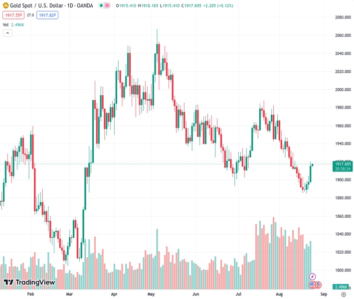 XAUUSD currently trading at 1917.3 at the time of writing. Pair opened at 1897.48 and is trading with a change of 1.04% % .