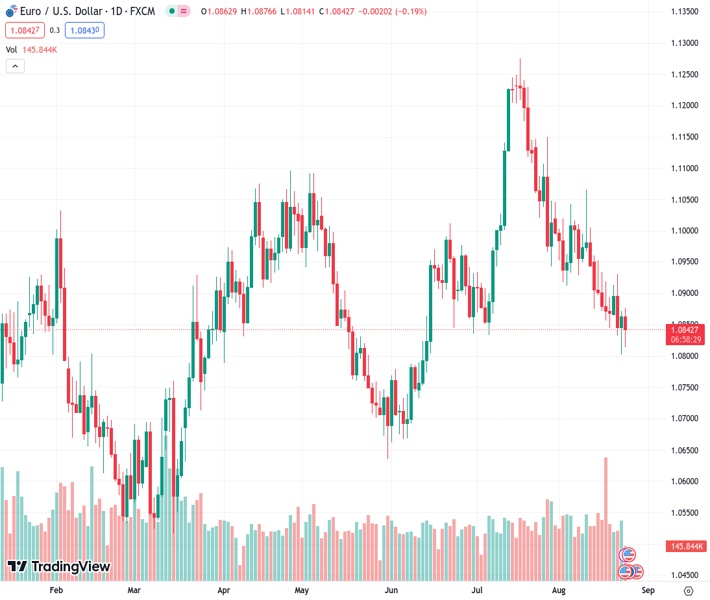 EURUSD currently trading at 1.0835 at the time of writing. Pair opened at 1.0864 and is trading with a change of -0.27 % .